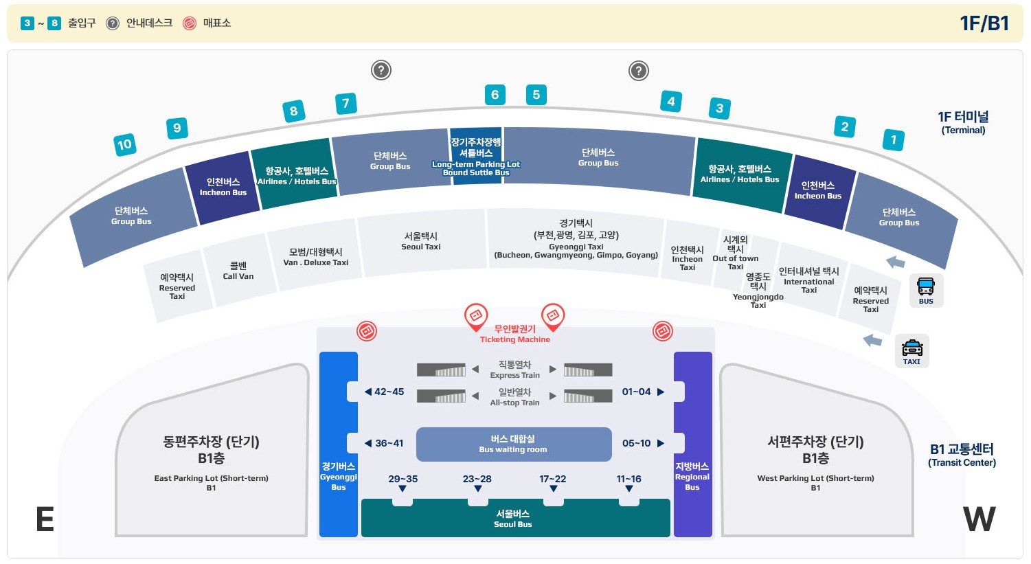1) 매표소: 공항이나 정류장 내 위치, 신용카드/현금 모두 가능